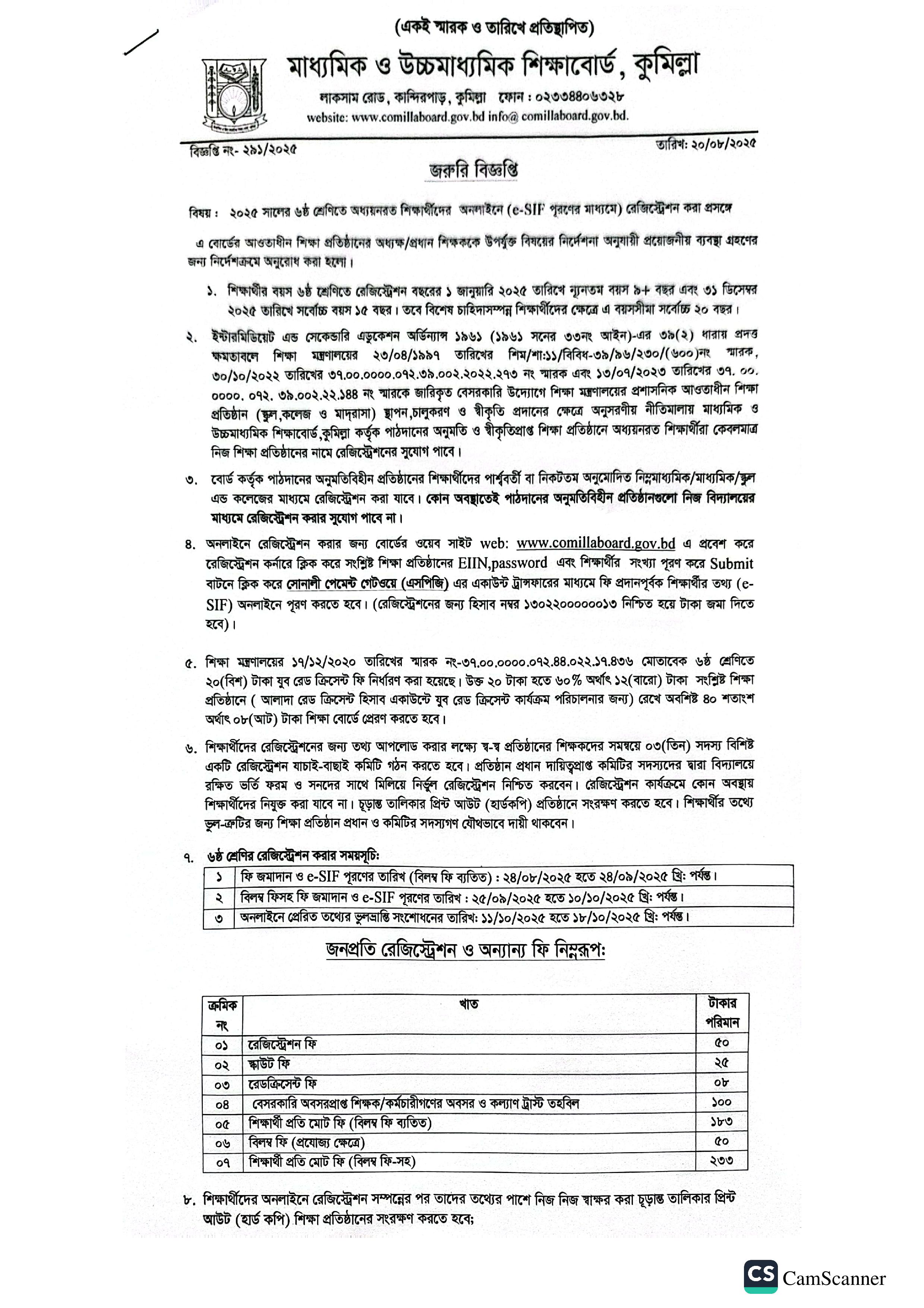 ২০২৫ সালের ৬ষ্ঠ শ্রেণিতে অধ্যয়নরত শিক্ষার্থীদের রেজিস্ট্রেশন করন প্রসঙ্গে |